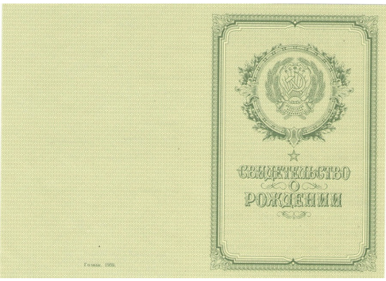- свидетельство о рождении СССР 1954 - 1970 гг. любого года выпуска, включая времена СССР – а дополнительно к нему может прилагаться список предметов и оценок, которые можно выбрать по вашему желанию;